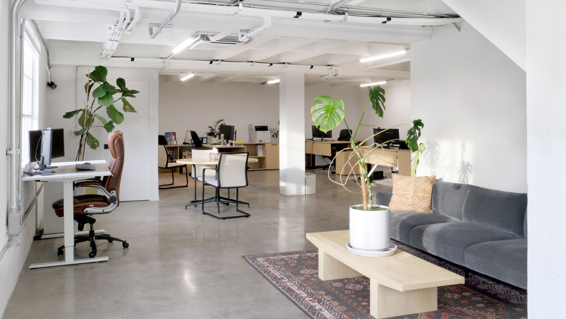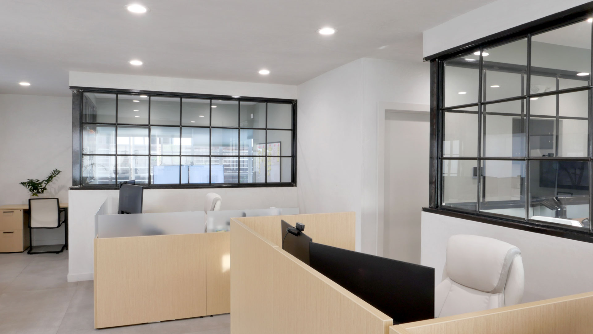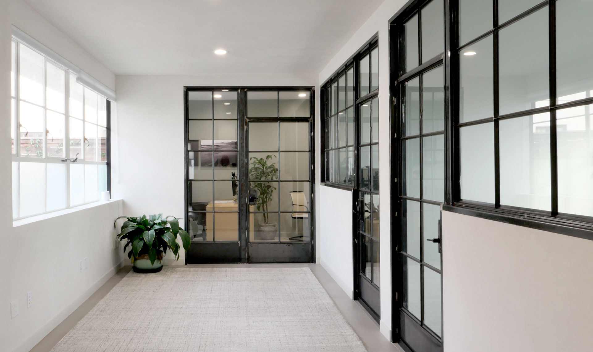 The remodel of the original Harold Burkett office at 740 E. Main for M&M Thrift Management transformed the mid-century building while preserving its industrial character. The project included the careful restoration of the original steel windows, the design and construction of new industrial- style steel private offices, and updated smooth plaster walls. New tile flooring was installed throughout, creating a cohesive, durable, and refined modern workspace that honors the building’s historic craftsmanship.